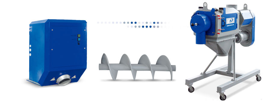 ZERMA offers a complete program of suction systems to discharge material from the machines. These systems include blowers, piping, cyclones and bag filling stations. Additionally we offer separation equipment to separate fines from the material flow. All blower systems can be equipped with components manufactured from highly wear resistant steels for use in abrasive applications.